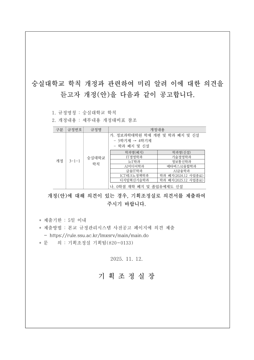 | 제목 | 학칙 개정 사전공고 | ||||